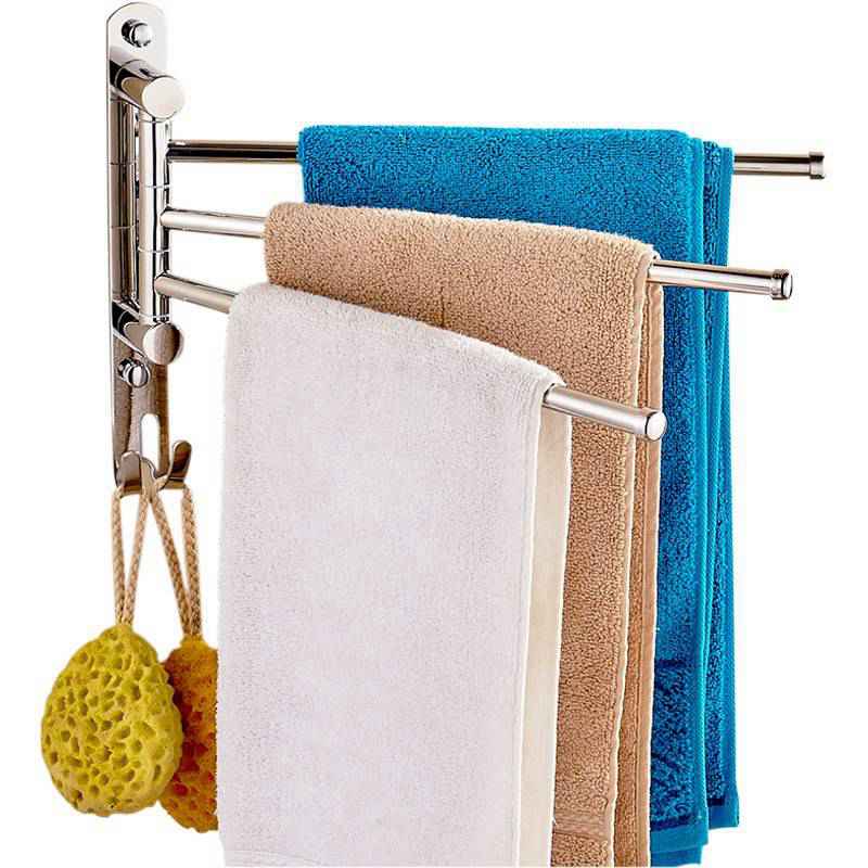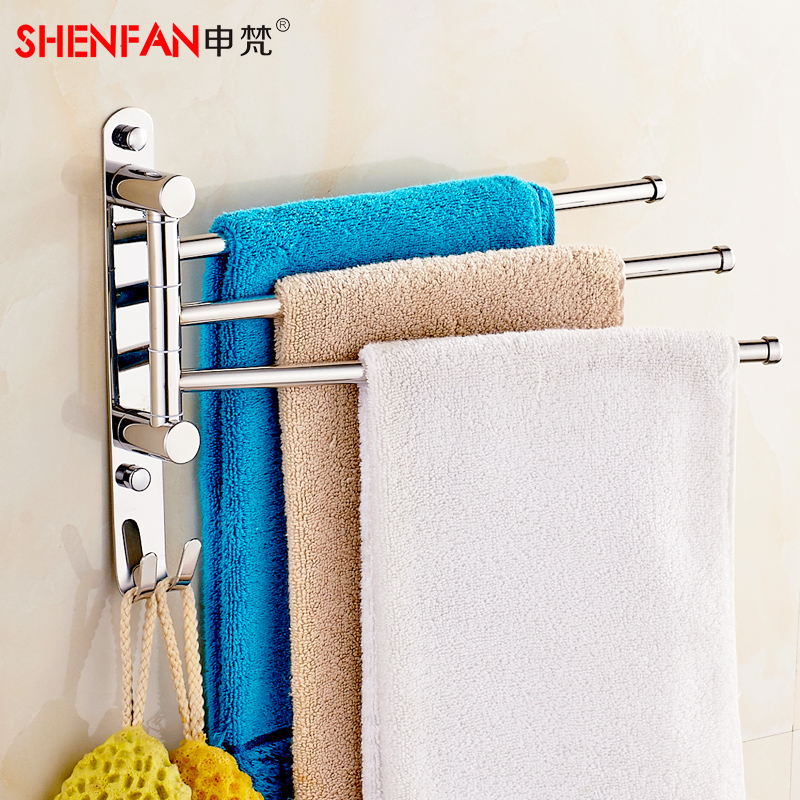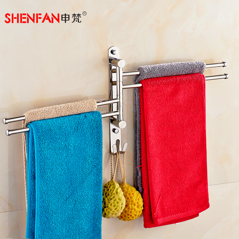 Stainless steel movable towel bar rotating towel rack Perforated bathroom pendant Powder room extended bath towel rack shelf