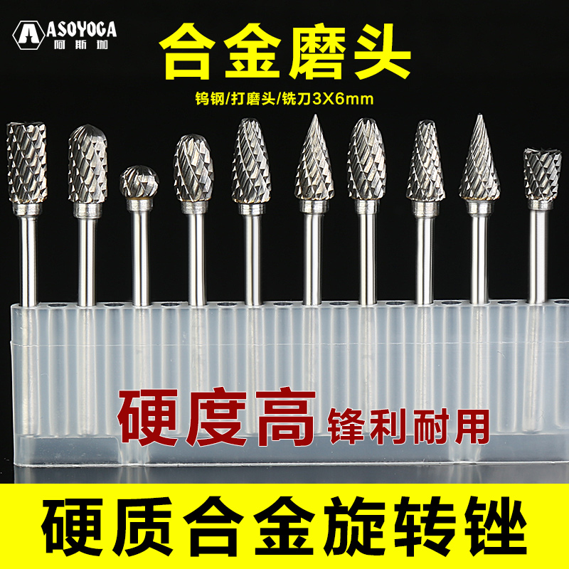 Aska 3x6MM carbide rotary file carving knife Metal wood carving root carving grinding head Tungsten steel milling cutter