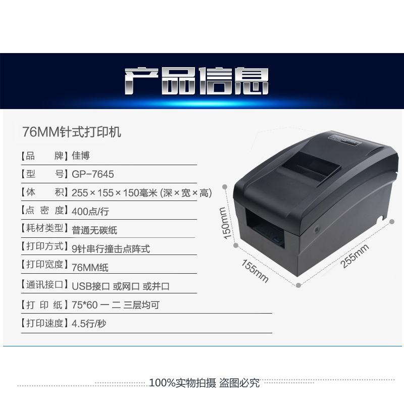 Jiabo GP7645 lattice type printing machine Two couplets Three-couplets clothing shop 76mm-pin beating supermarket catering bill with cutting knife