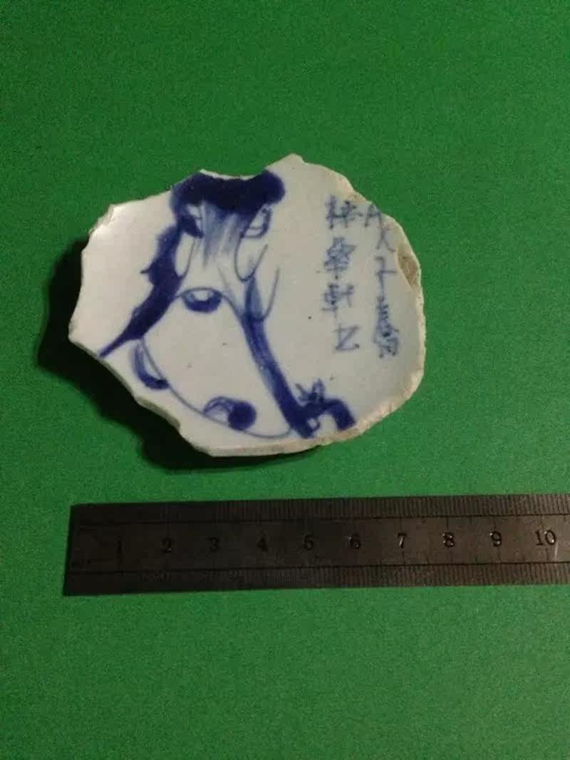 Antique antique Qing Dynasty old kiln writing handwriting pattern Old porcelain old porcelain old objects Old porcelain residual bottom specimen