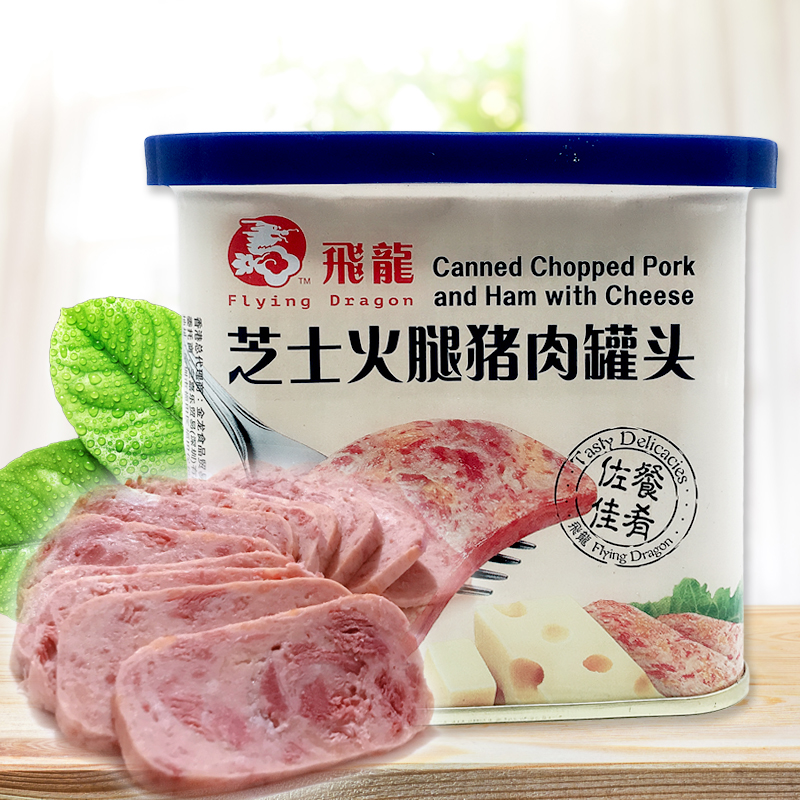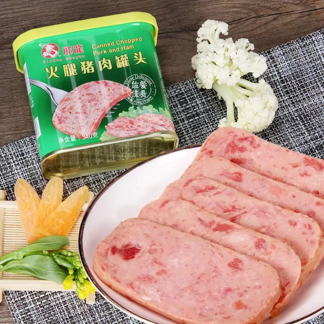 Flying Dragon Ham Afternoon Meal Meat Pork Canned 340g Can Be Fried Ready-to-eat Breakfast Ingredients Lean Meat Brushed Hot Pot Snack
