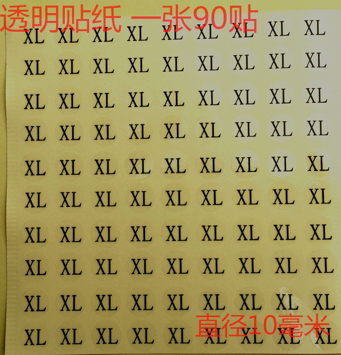 Dress code Number of sizes Code transparent sticker clothing Number of pants Number XS SMLXLXXLXXXL each 90 sticker price