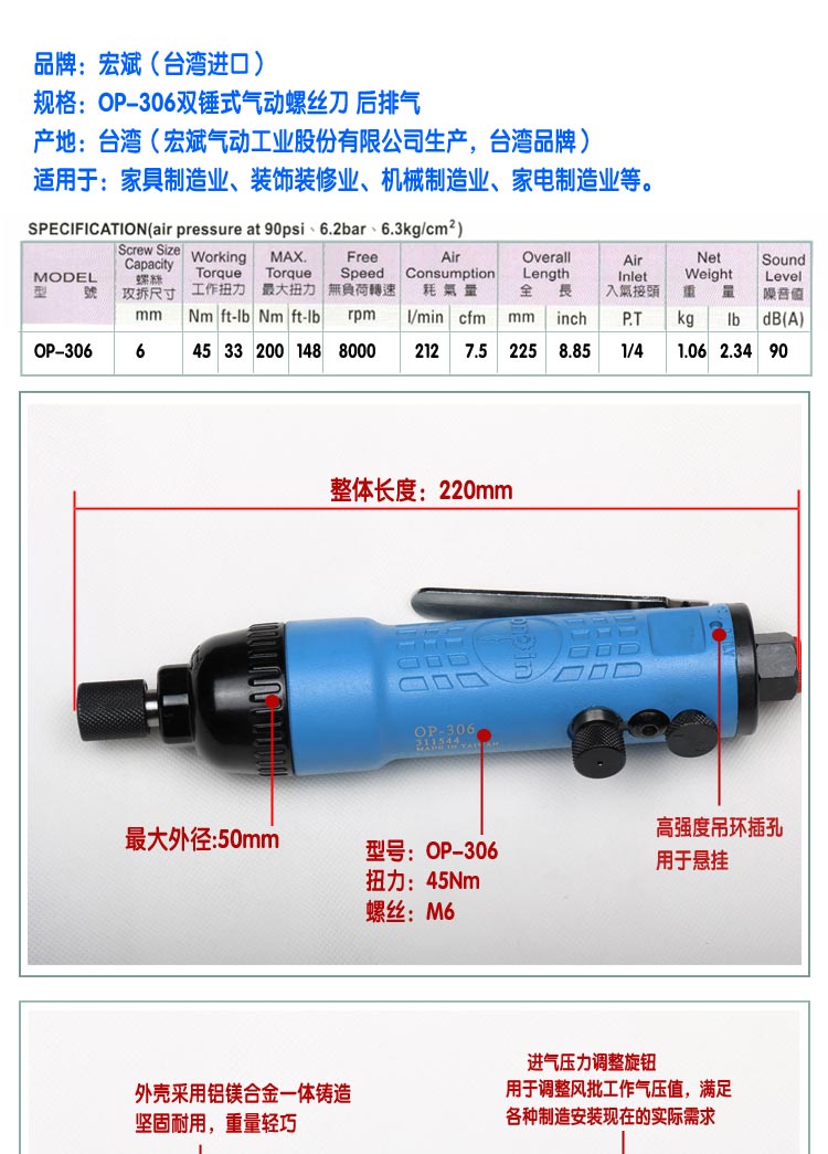 Taiwan original installation Hongbin OP-306 Pneumatic screwdriver screw screwdriver pneumatic screwdriver pneumatic screw driver