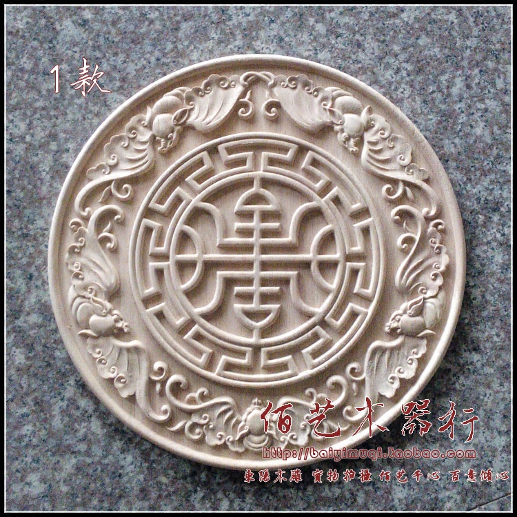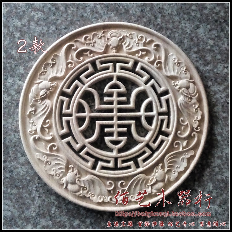 Dongyang wood carving flower solid wood Chinese Fushou round door heart applique patch furniture background bat life decoration suspended ceiling