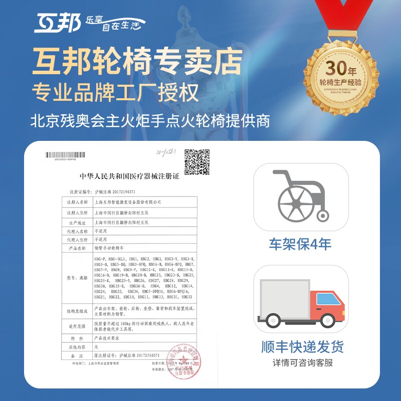 Interbang wheelchair HBL 6 - RZ old man portable folding ultra - light aluminum alloy 16 inch small inter - gang cart