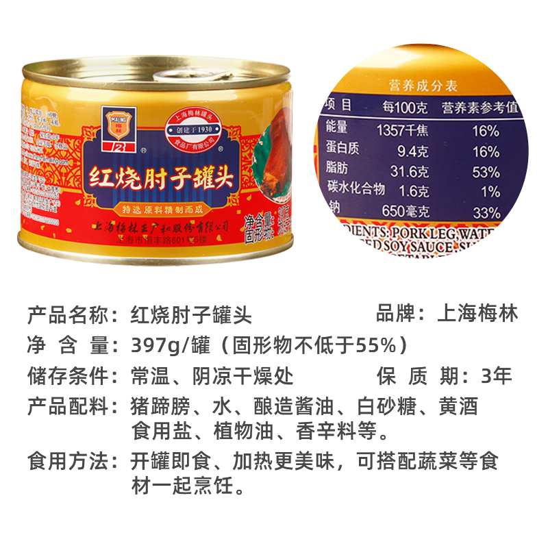 Shanghai Melin Red Cover elbow canned 397g*5 can red pork hog hoof and cooked food ready for meals