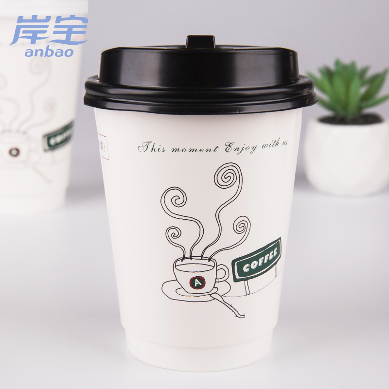 Shore Treasure Milk Tea Cup Cupcake Disposable Coffee Milk Tea Cupcake Thickened Hot Drink Hollow Cup 100 Only with lid