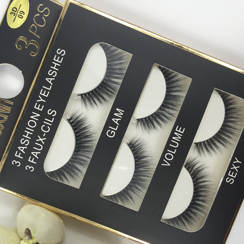 3D pure handmade false eyelash 09 solid multilayer emulation natural naked makeup slim fit two-send glue 3 pair dress