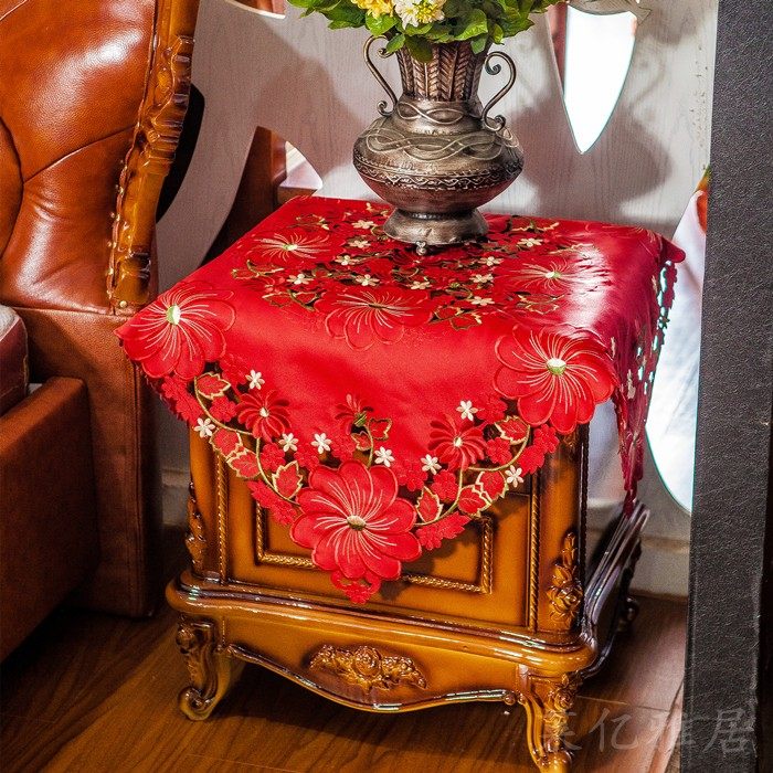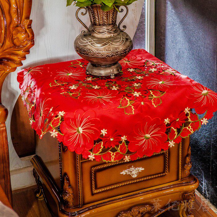 New red festive bedside table TV cover cloth towel refrigerator air conditioner dust cover European pastoral table cloth art