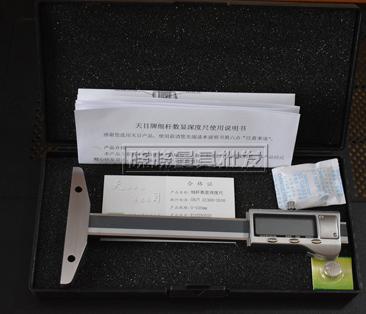 Guilin Tianmu high-grade metal shell thin rod digital display depth ruler 0-25mm electronic small head ruler measuring rod hole 1 0