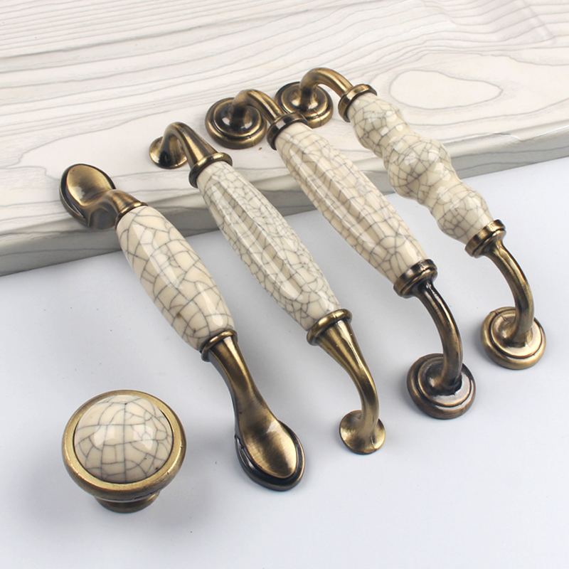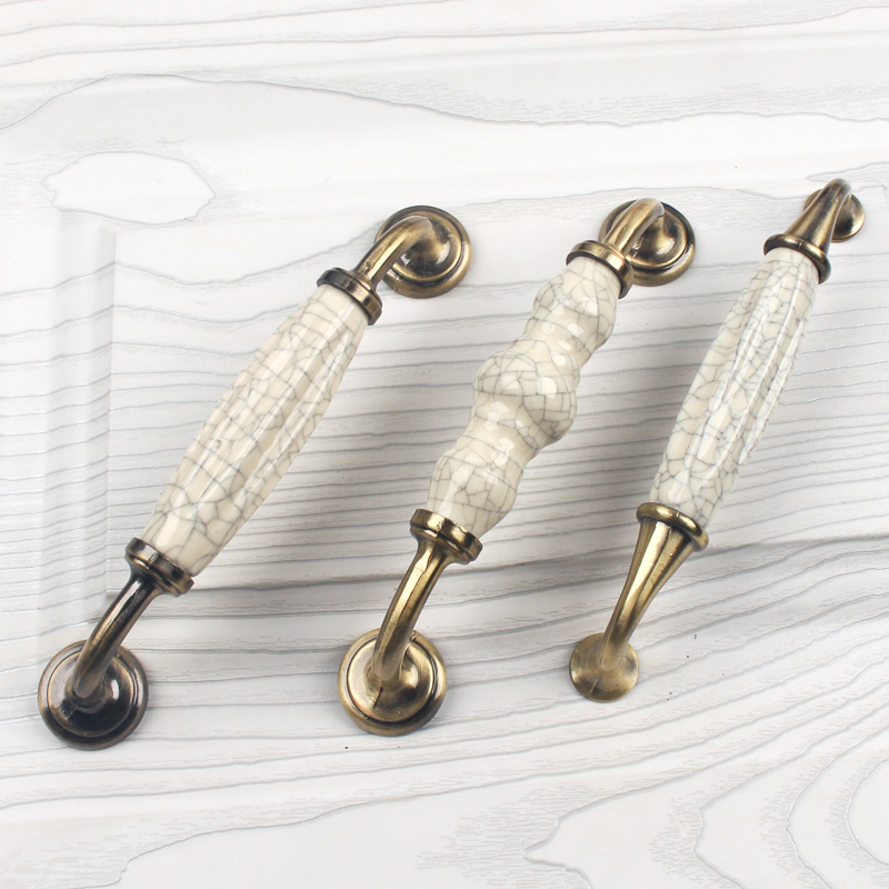 European Crack Ceramic Handle Cabinet Furniture Drawer Wardrobe Door Rustic Antique Green Antique Hardware Handle