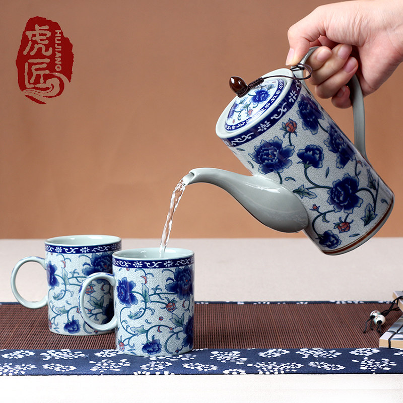 Jingdezhen Ceramic Teapot Pot Magic Lamp Pot Blue and White Porcelain Single Household Antique Long Mouth Teapot Kung Fu Tea Set