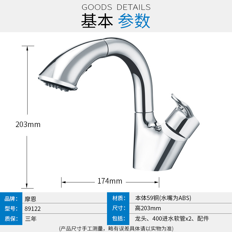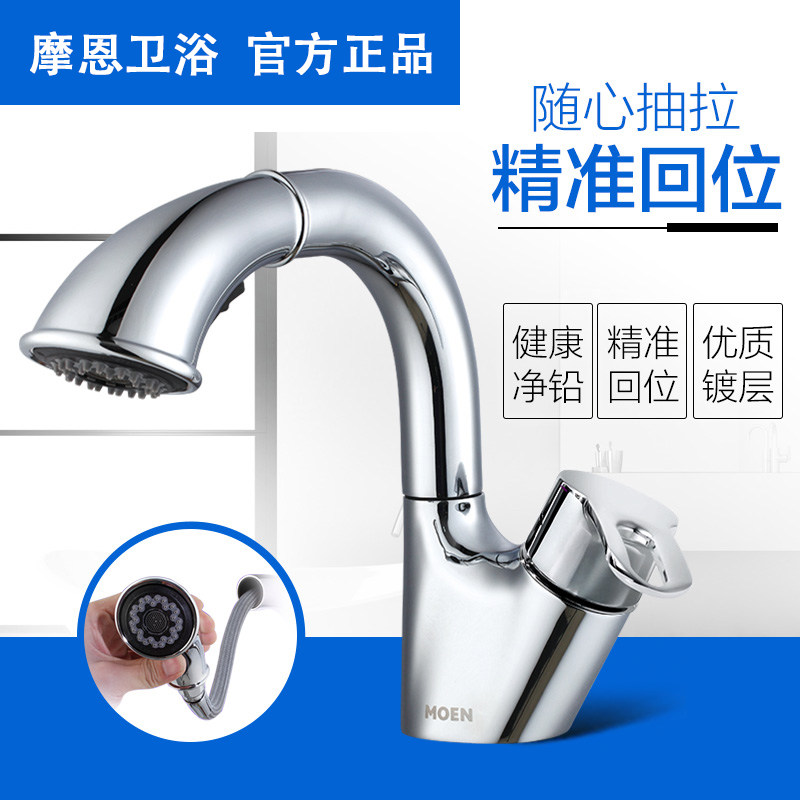 Moen pull-out faucet hot and cold two-in-one all copper bathroom basin washbasin washbasin household 91035