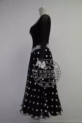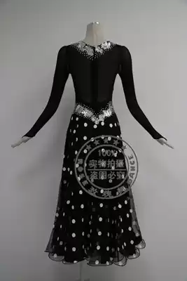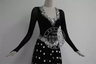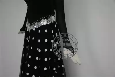 Rose Dance 99 Black V-neck Long-sleeved Modern Dance skirt White Rose Sequined Social dance skirt Adult dance skirt