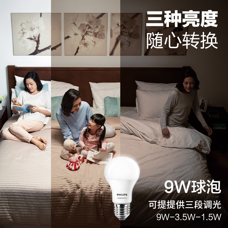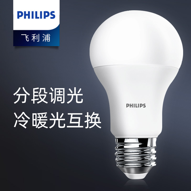 Philips three-color dimming led light bulb e27e14 screw mouth household 8w super bright screw mouth energy-saving lamp chandelier