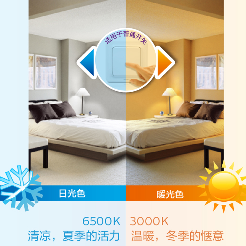 (E27)7W three-stage dimming (6500K white light) (E27)7 5W three-stage dimming (3000K yellow light) (E27)8W color temperature conversion (3