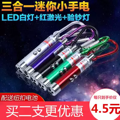 Three-in-one purple banknote detection lamp pen to detect food aflatoxin mini funny cat toy flashlight Teaching special ultraviolet fluorescent agent detection pen