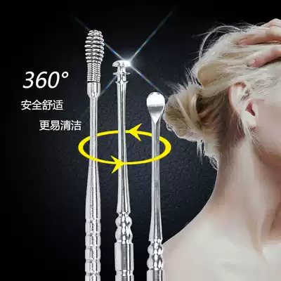 Stainless steel double-headed ear digging spoon Ear picking spoon Ear pick ear picking tool Ear digging ear artifact Adult single pack