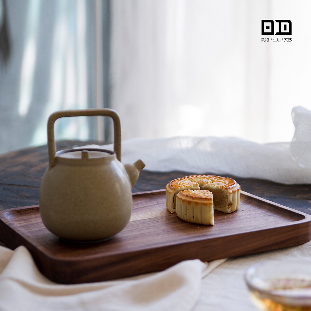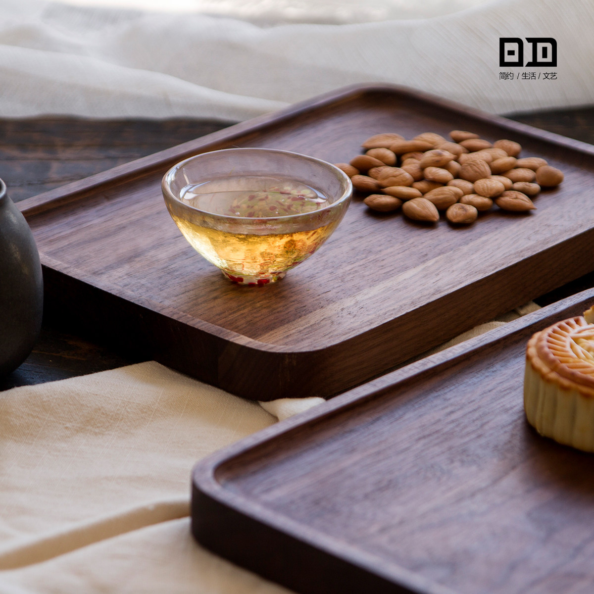Miyake family tableware splicing black walnut solid wood plate Paint-free and wax-free rectangular tray Japanese wood tray Tea tray
