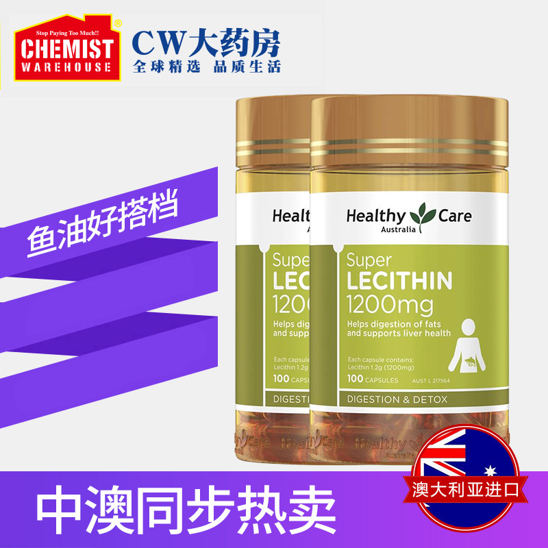Healthy Care Soy Lecithin Soft Capsule 100 grains * 2 bottles can be matched with deep-sea fish oil Australia