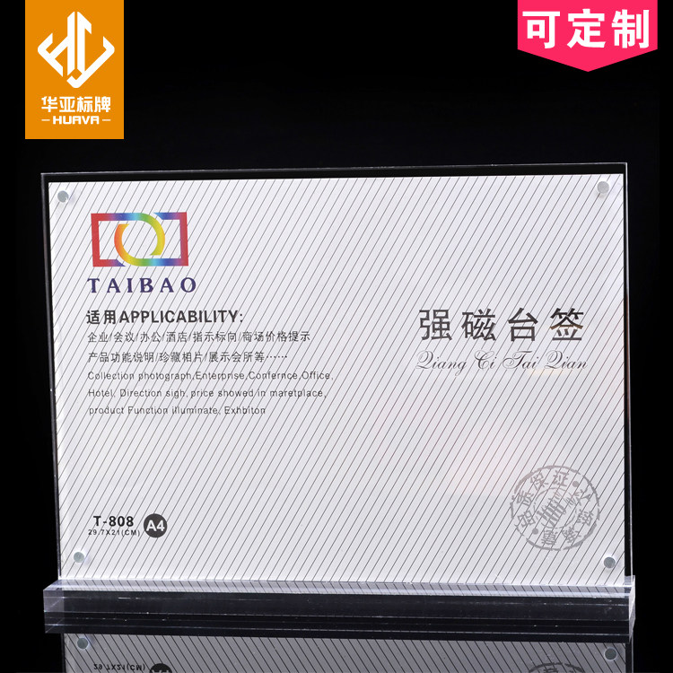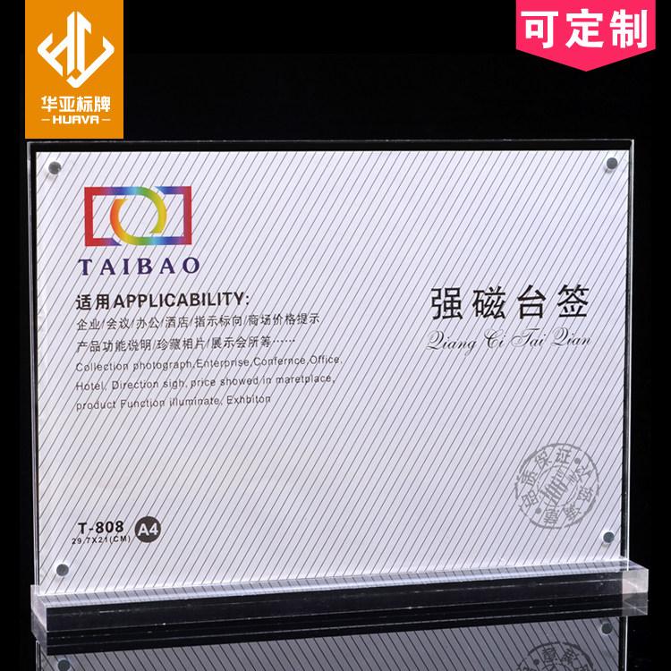 29 7*21 brand custom A4 transparent press crystal strong magnetic double-sided tableboard tableboard display sign