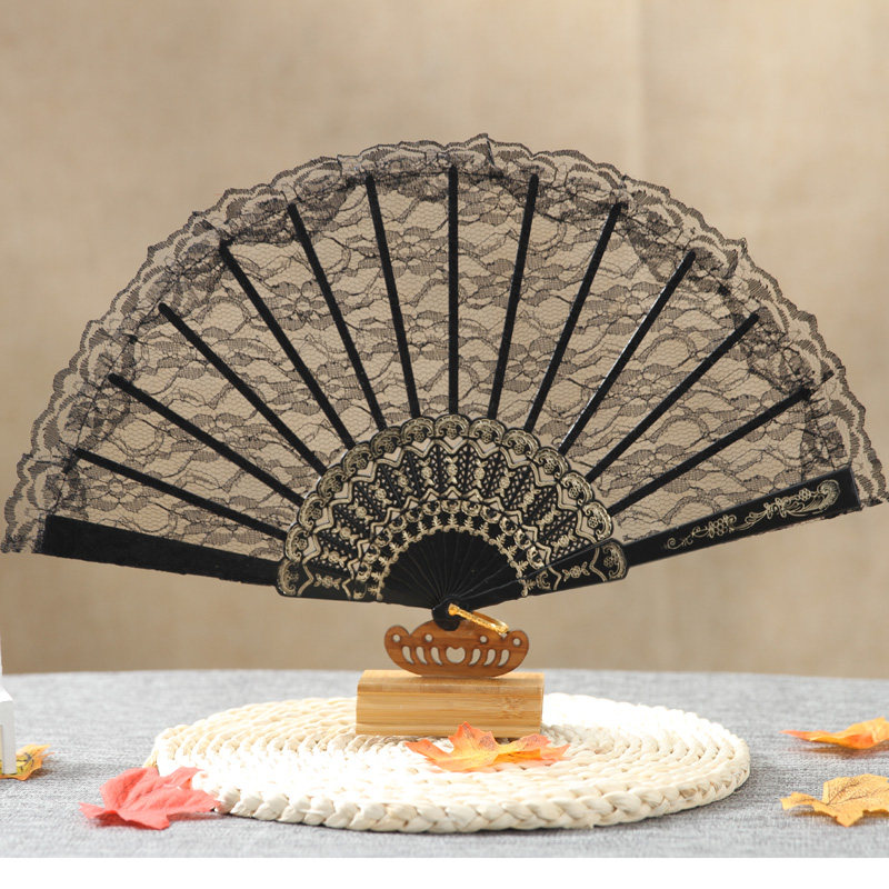 Eurostyle palace female fan single lace folding fan dance fan plastic dancing fan square dance folding fan