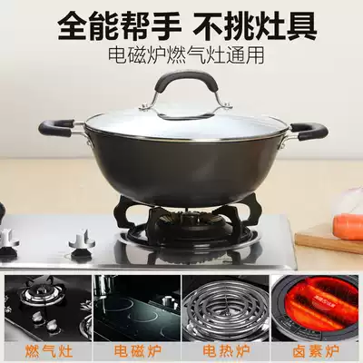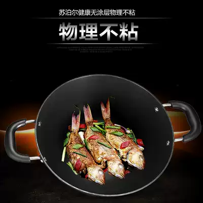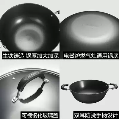 Supor large iron pot Old-fashioned traditional large spoon household large wok Cast iron induction cooker gas stove binaural iron pot