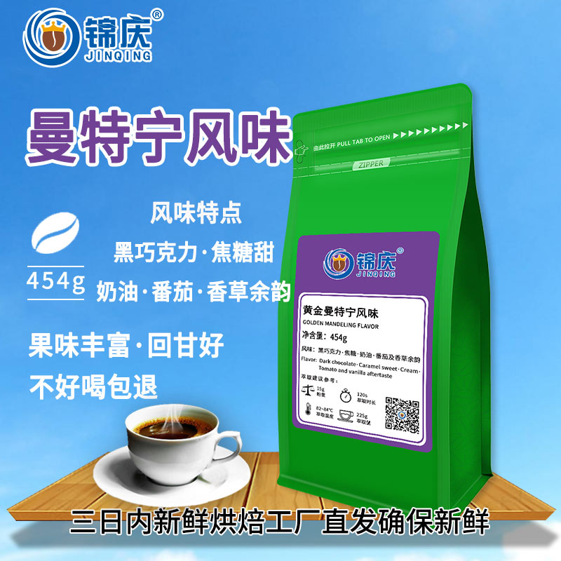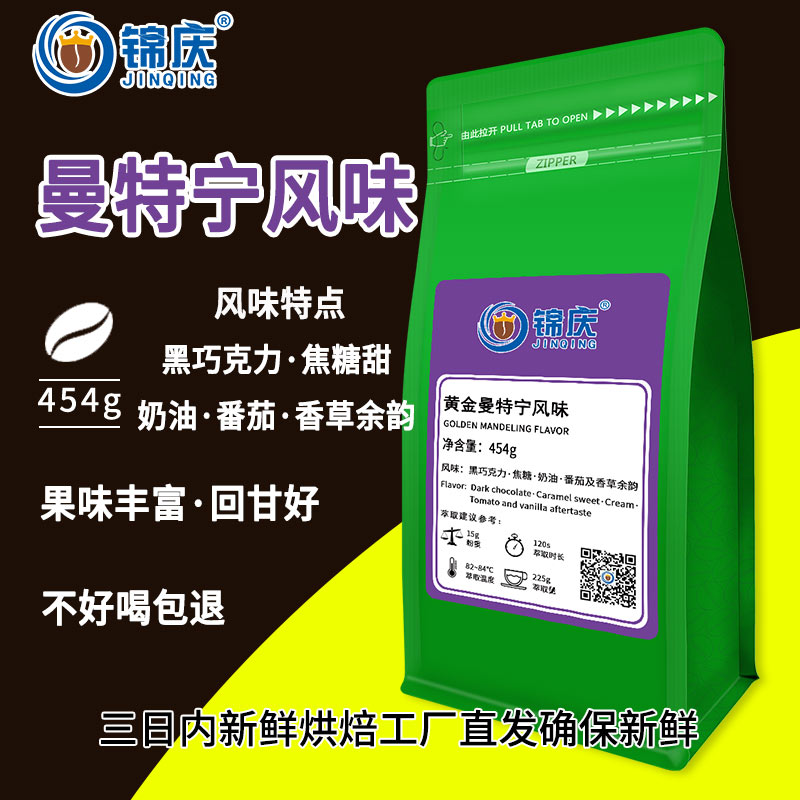 Jinqing fresh and medium roasted Yunnan small fine single gold Mante black coffee beans can be ground pure 454g