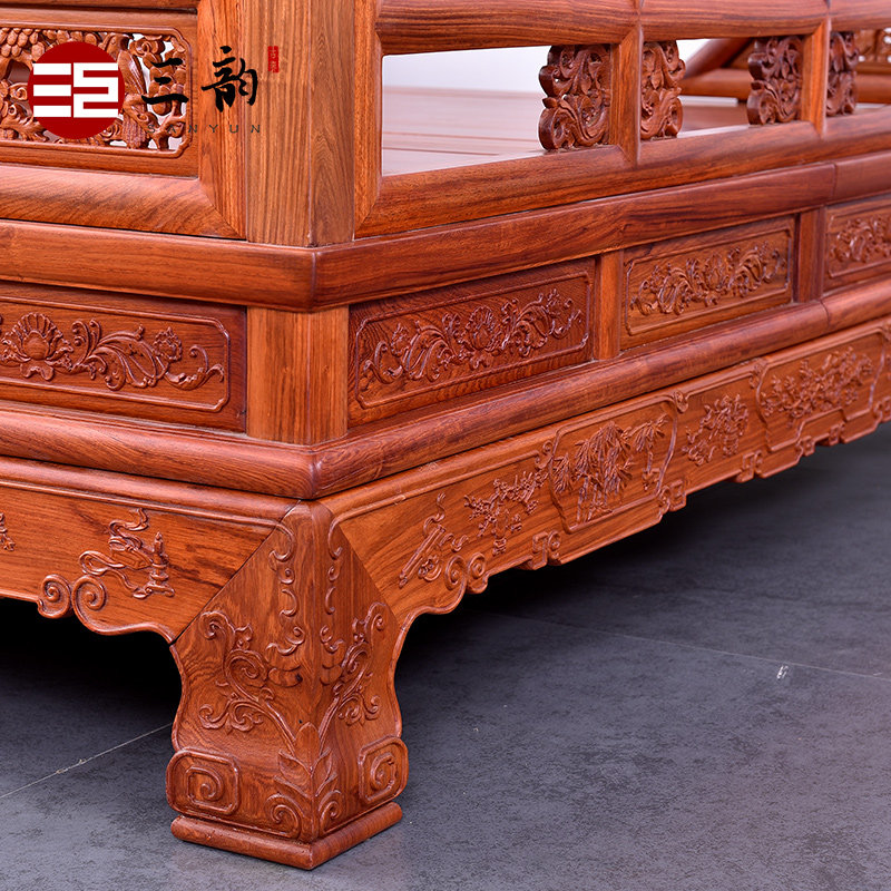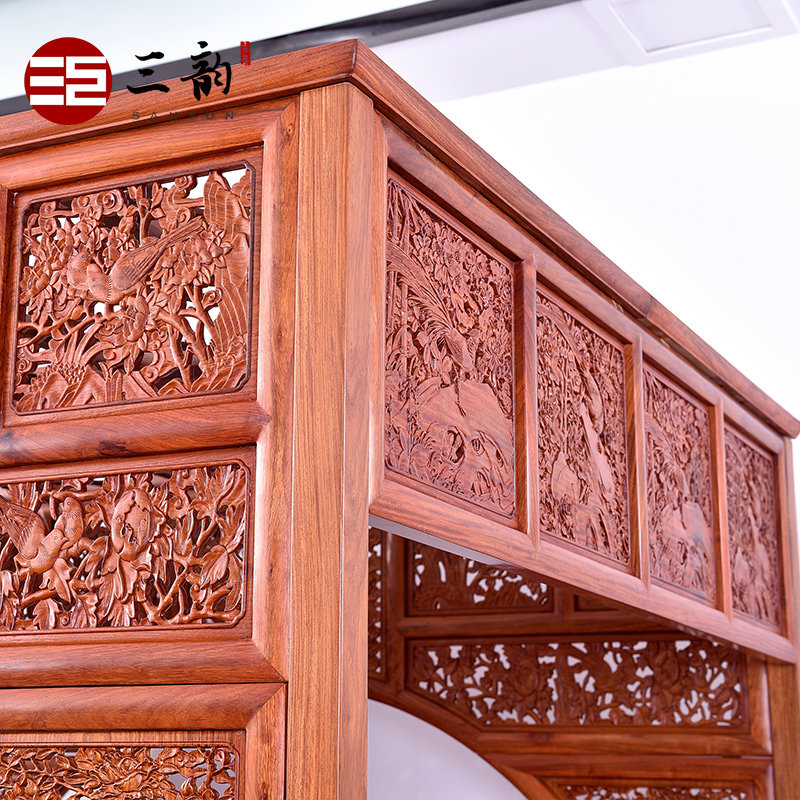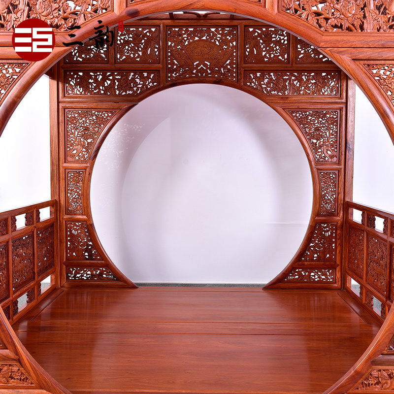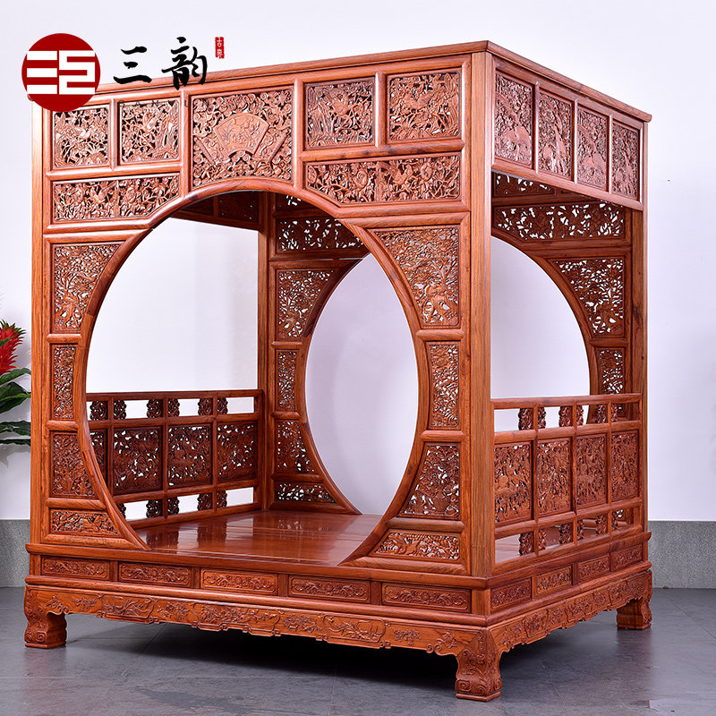 Myanmar flower pears classical carved bed linen moon cave door Ming and Qing classical shelf bed Chinese solid wood double bed Z