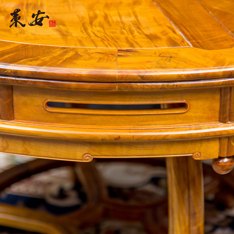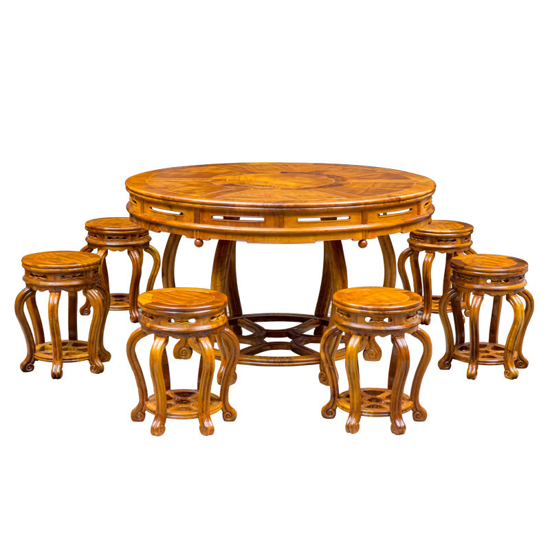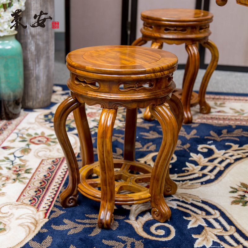 Red Wood Furniture Round Drum Table High-end Chinese Imitation Antique Solid Wood Casual Table Gold Silk Nanwood Round Table Chess table-Taobao