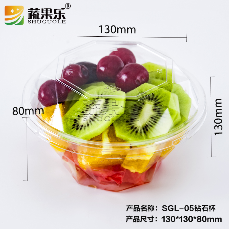 Vegetable and fruit music 05 transparent small diamond fruit fishing cup with lid Fresh fruit cut salad delivery packing box 200g packed manufacturers
