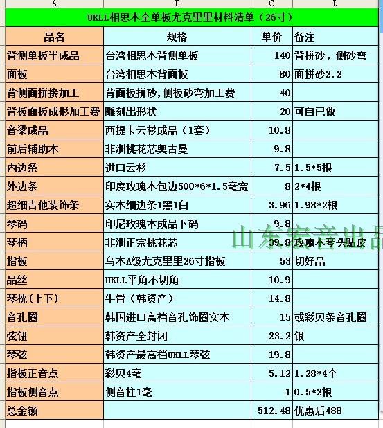 26 inch ukulele imported acacia wood all single material combination guitar making material accessories Shandong Hongyin
