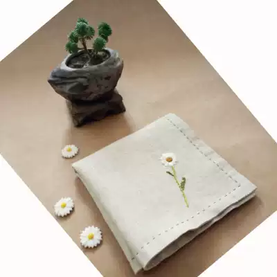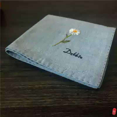 Hand embroidered hipster Daisy handkerchief embroidered letter name linen cotton men and women friends gift
