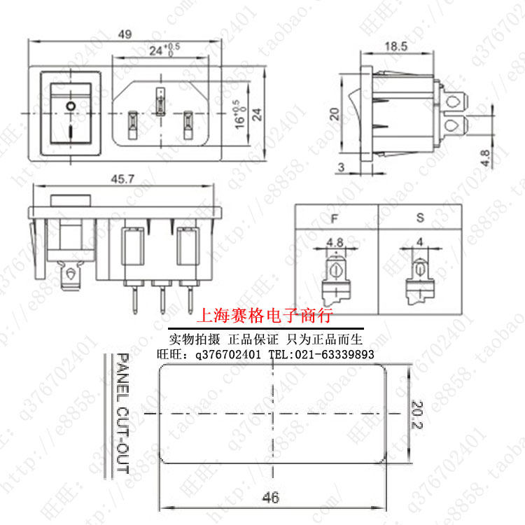 AC Power Socket Transverse with switch Pinword sockets Two-in-two-card lateral pindi with switch 2-in-1 socket