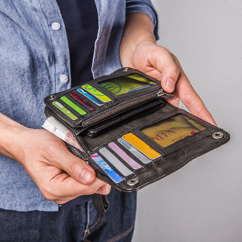 Leather wallet Men's short vertical multi-function driver's license card bag men's handmade retro fashion brand sheepskin zipper