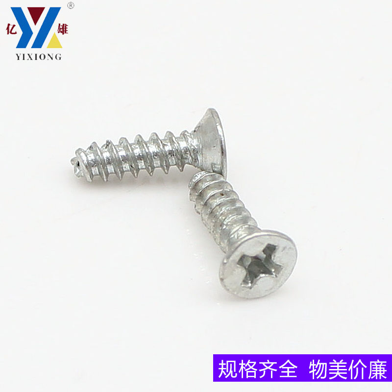 Plated white zinc cross groove flat head countersunk head-end flat tail screw cut tail cut-tail self-tapping screw M3 M4