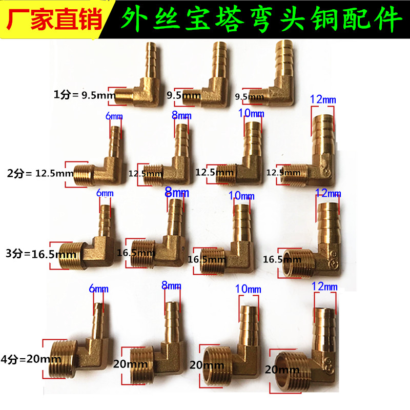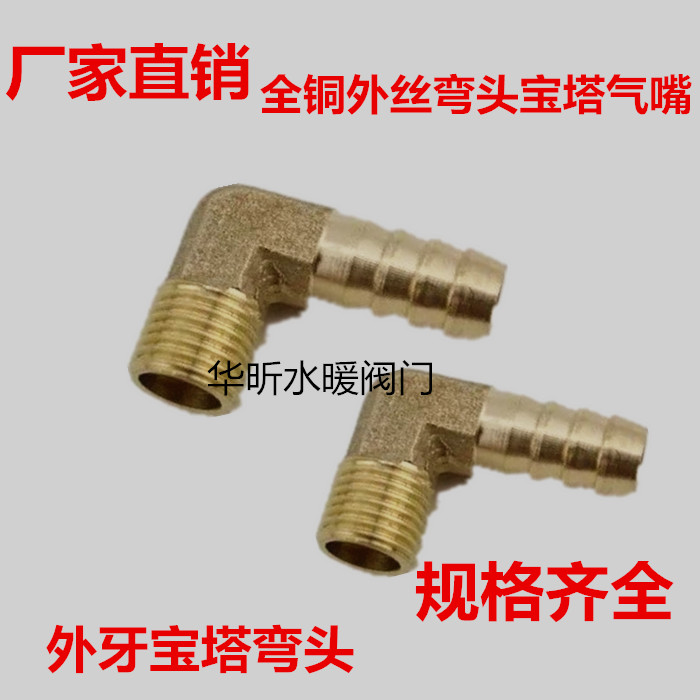 Full Copper Pagoda Elbow 6 8 10 12MM-1 2 3 4 Outer Silk Pagoda Nozzle Right Angle Gas Nozzle Water Pipe Joint