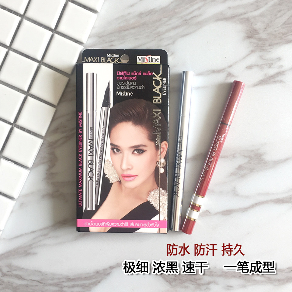 Thailand Mistine eyeliner silver tube red tube eyeliner long-lasting quick-drying thick black soft head liquid eyeliner
