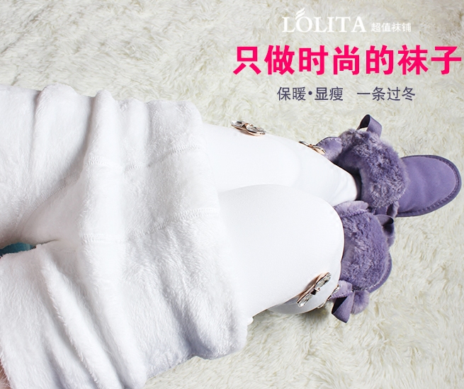 Winter velvet thickened handmade bow diamond tights Luxury flash diamond stepping socks Velvet white socks