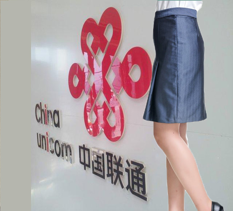 China Unicom special skirt uniform dark gray front pleated hip skirt professional one-step skirt skirt short skirt