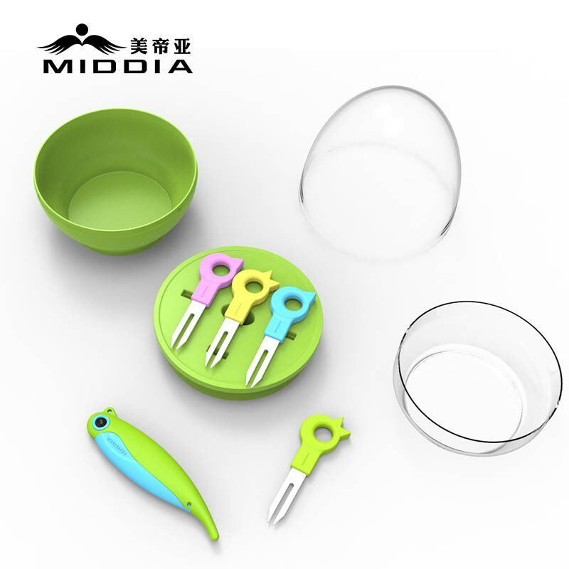Beauty Imperia Small Poly Egg Fruit And Vegetable Cuisine Tools Ceramic Knife Suit Fruit Fork Containing Bowl Folding Knife Portable Hygiene