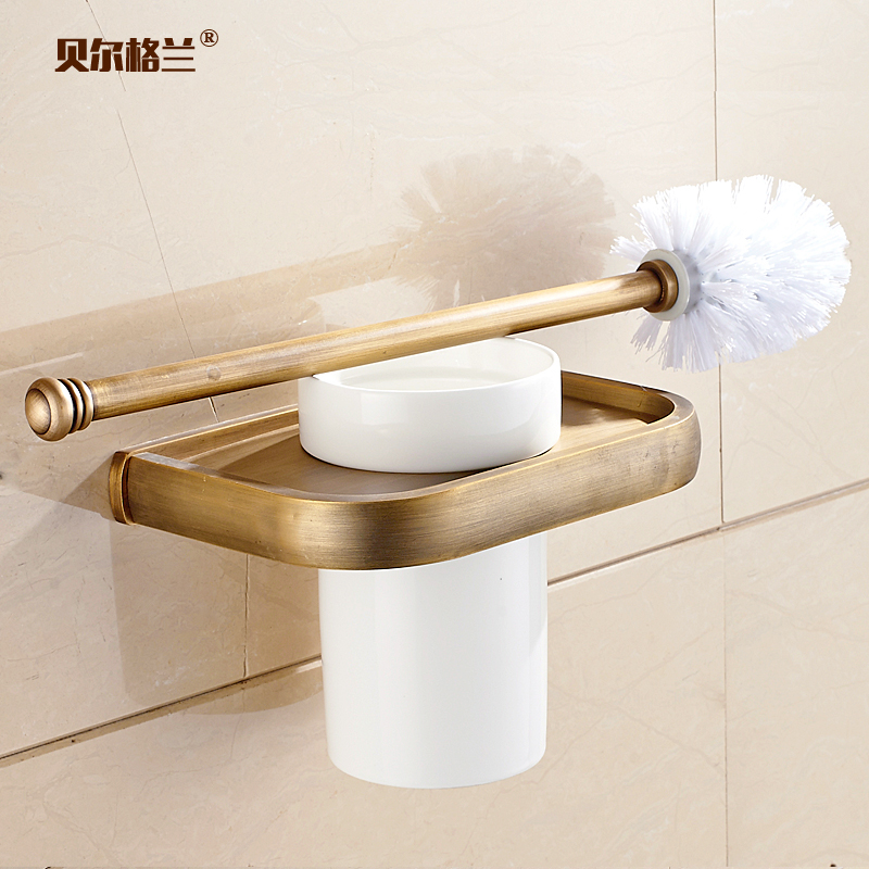 Full copper imitation ancient toilet brush toilet make-up room cleaning brush pure copper retro European style bathroom Supplies suit