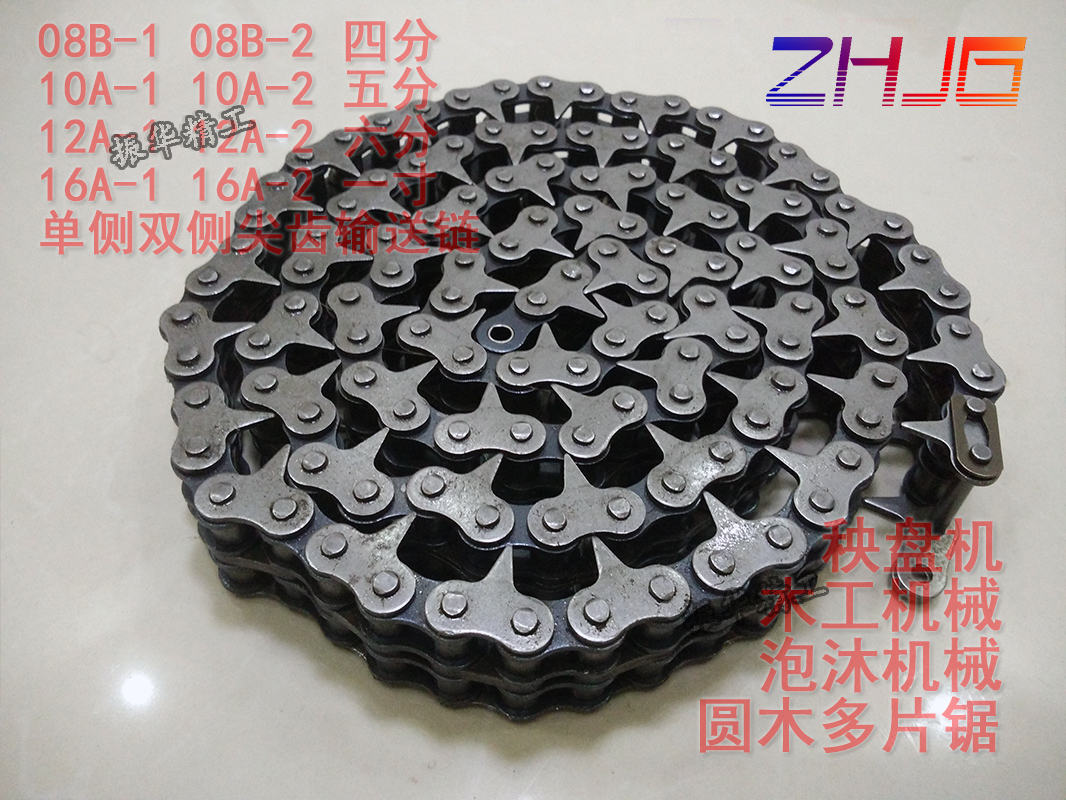 Round wood saw pointed tooth conveyor chain 08B-1-2 10A 12A 16A four five six minutes one inch single and double side teeth
