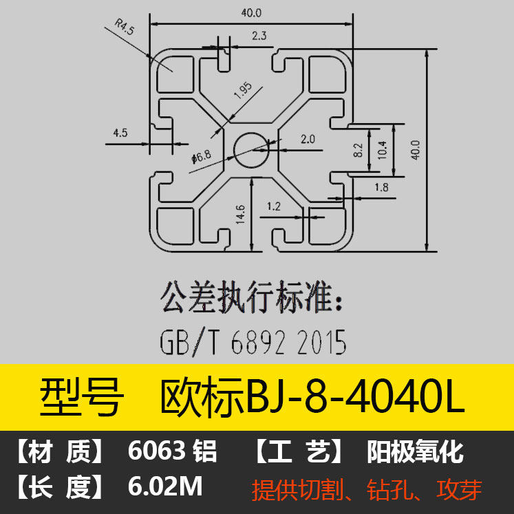 European Standard 4040 Aluminum Extrusion Material 4040L Industrial Aluminum Extrusion Material Aluminum Square Tube Fish Tank Equipment Frame Processing Customization