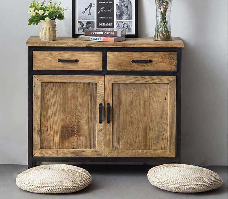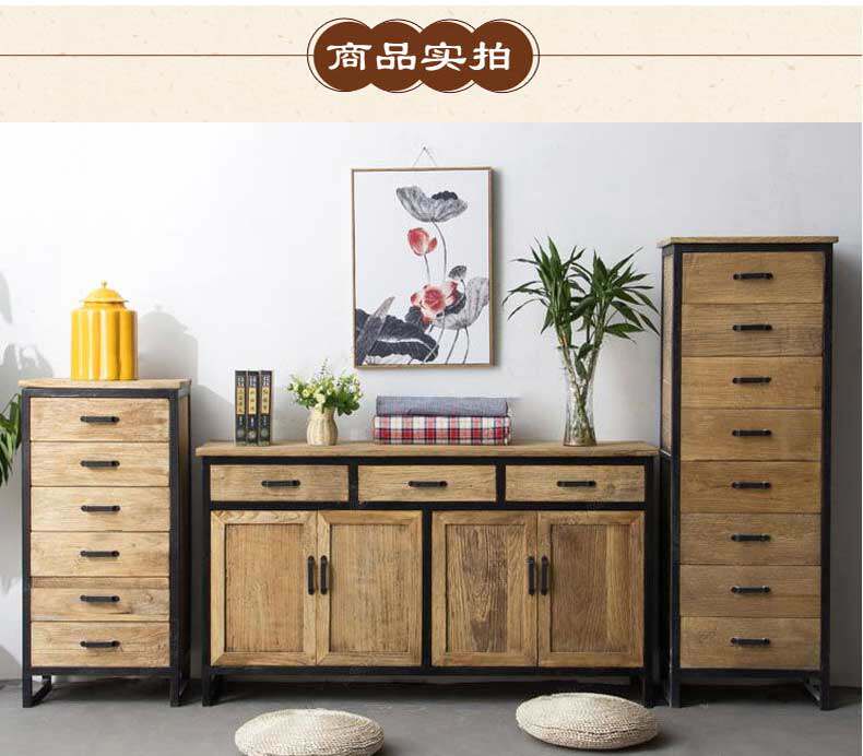 American country retro dining cabinet Wrought iron solid wood locker Storage cabinet Creative cabinet Entrance cabinet Shoe cabinet Bucket cabinet