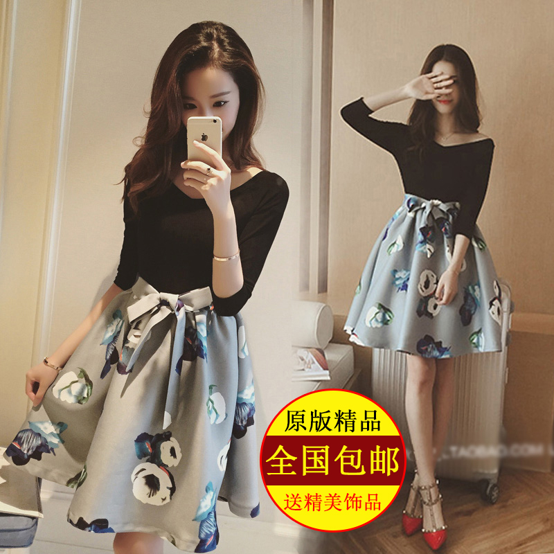 2022 spring and autumn new women's dresses slimming banquet dresses annual meeting small dresses tutu skirt printing dresses