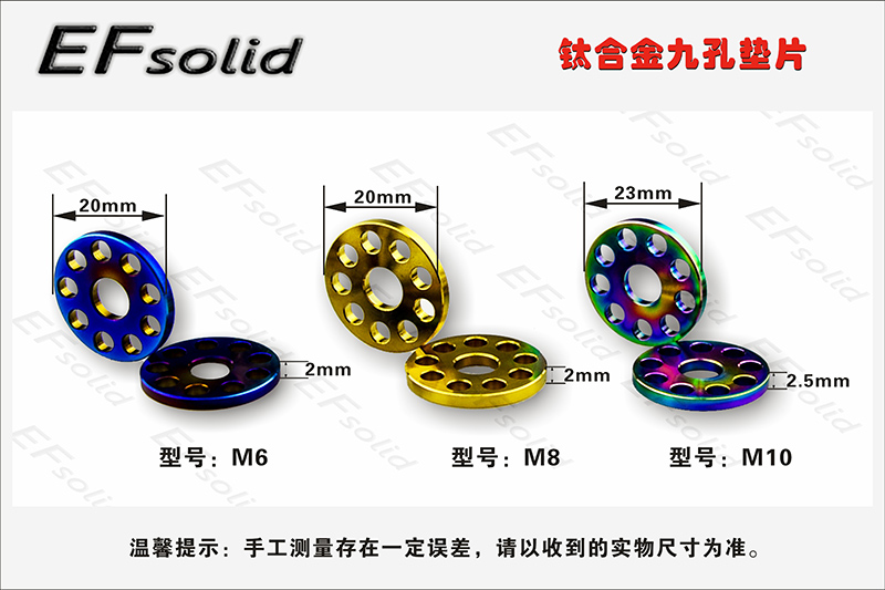 EFsolid titanium alloy 9 hole gasket Locomotive decoration screw gasket M6 M8 M10