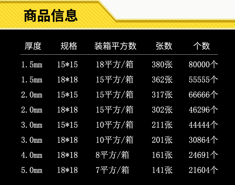 Cork mat 1.5mm*18*18*18 square 1 box cork pad 1.5mm*15*15*18 square 1 carton (cork pad) 5mm*18*18*7 square 1 carton (cork pad) 3mm*15*15*10 square 1 carton (cork pad) 2mm*15*15*15 square 1 box (cork pad) 3mm*18*18*10 square 1 box (cork pad) 2mm*18*18*15 square 1 carton (cork pad) 4mm*18*18*8 square 1 box