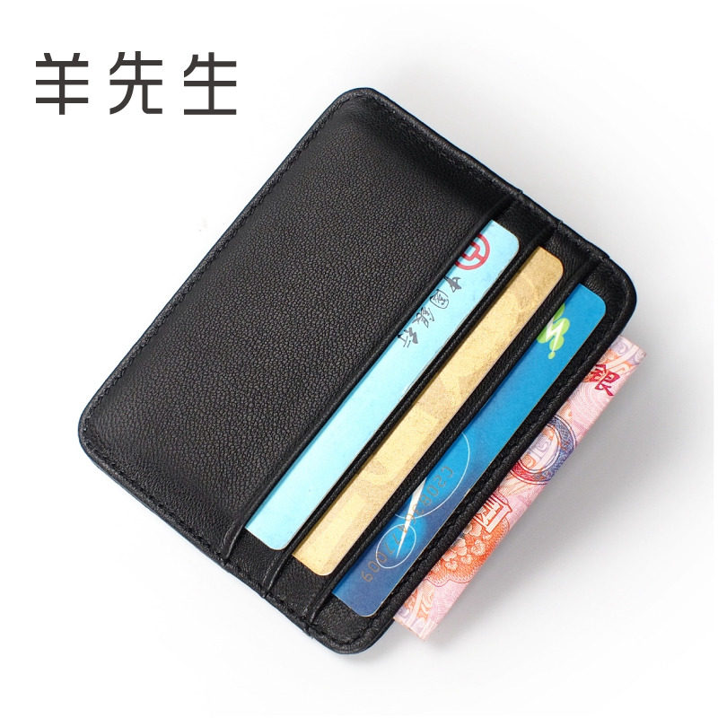 Mr. Sheep Men's Leather Small Card Sleeve Ultra-thin Sheepskin Card Holder Coin Purse Soft Leather Bank Card Holder