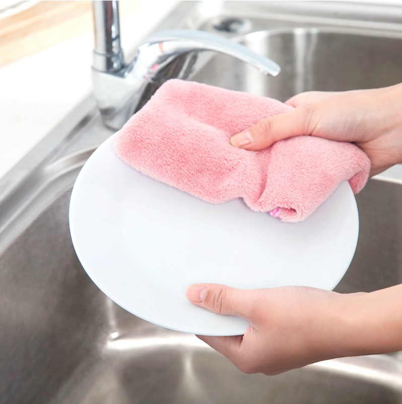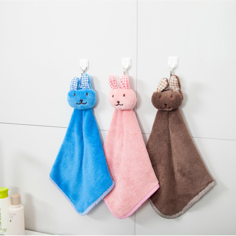 Cute rabbit head coral velvet hand towel Absorbs water, does not lose hair, does not stick to oil, dishcloth, dishcloth, hanging cleaning cloth